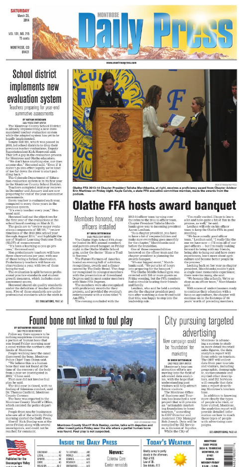 While interning with the City of Montrose I co-authored this media release with Public Relations Coordinator Stacy Ryan.